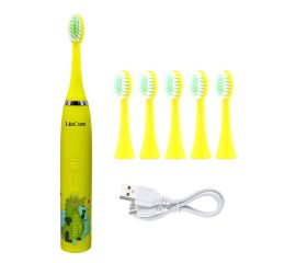 Periuta de dinti electrica Lila Care, pentru copii, rezistent la apa, cu incarcare USB, 6 capete inlocuibile, 4 moduri de vibratii, galben
