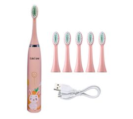 Periuta de dinti electrica Lila Care, pentru copii, rezistent la apa, cu incarcare USB, 6 capete inlocuibile, 4 moduri de vibratii, roz