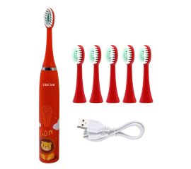 Periuta de dinti electrica Lila Care, pentru copii, rezistent la apa, cu incarcare USB, 6 capete inlocuibile, 4 moduri de vibratii, rosu