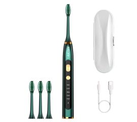 Periuta de dinti electrica LilaCare, rezistenta la apa, incarcare USB, 5 moduri de vibratii, 4 capete inlocuibile, verde
