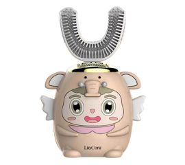 Periuta de dinti electrica pentru copii Lila Care, tip U, cu incarcare USB, cu 5 viteze, roz nude
