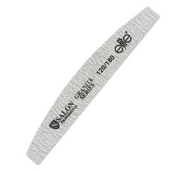 Pila unghii Salon, semiluna, gri, granulatie 120/180 Pila Salon se utilizeaza pentru pilirea unghiei naturale sau celor tehnice in forma dorita. Are doua fete cu granulatii diferite. Designul ergonomic iti permite o manevrare cat mai usoara.