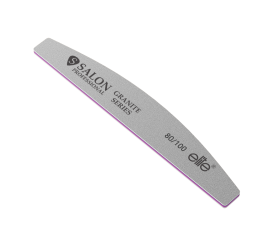 Pila unghii Salon Professional, refolosibila, semiluna, gri, granulatie 80/100 Pila Salon se utilizeaza pentru pilirea unghiei naturale sau celor tehnice in forma dorita. Are doua fete cu granulatii diferite. Designul ergonomic iti permite o manevrare cat mai usoara.