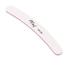 Pila unghii Miley, banana, alba, granulatie 100/180 Pila cu 2 fete cu granulatii diferite, ideala pentru scurtarea unghiilor tehnice. Designul ergonomic iti permite o manevrare cat mai usoara.