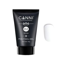 Polygel uv Canni pentru constructie unghii, Premium 02, 45 ml, White Canni Polygel cucereste prin formula inovatoare, fiind un gel acrilic cu textura densa si cu o vascozitate ridicata. Deosebit de rezistent si ideal pentru constructia unghiilor pe tips sau pe sablon este produsul ce nu...