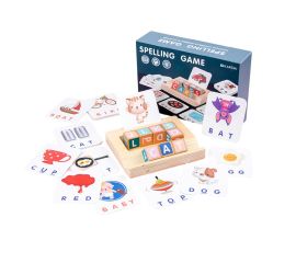 Puzzle Karemi din lemn, joc de ortografie, spelling game, joc invatare limba engleza, K01B-10140 Un joc in stilul unei masini de scris. Contine cartonase cu diverse obiecte si animale. Fiecare are cate un desen si cuvantul scris in partea de jos. Pune poza in compartimentul...