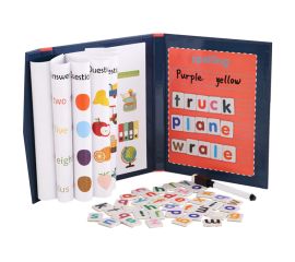 Puzzle Karemi, joc de ortografie cu litere magnetice si tabla de scris, tip carte, invatare limba engleza, 54 piese, K01B-10139
