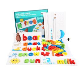 Puzzle Karemi din lemn, joc de ortografie, spelling game, invatare limba engleza, 79 de piese, K01B-10140