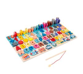 Puzzle Karemi 7 in 1, din lemn cu magneti, joc pescuit, ortografie, invatare numere, educativ, pentru copii peste 3 ani