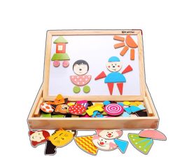 Puzzle Karemi din lemn, tabla cu 2 fete, magnetica si table pentru creta, cu figurine