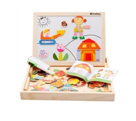 Puzzle Karemi din lemn, tabla cu 2 fete, magnetica si table pentru creta, cu figurine