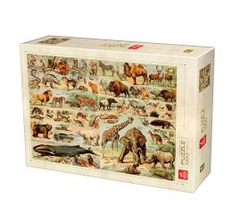 Puzzle model enciclopedie cu animale, 1000 piese Cutia contine un puzzle de o mie de piese din care poate fi asamblata o imagine cu animale salbatice dintr-o enciclopedie. Varsta minima recomandata este de 14 ani.