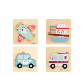 Set puzzle Karemi pentru copii, 4 mijloace de transport