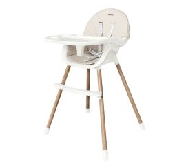 Scaun de masa Karemi, pentru bebe, multifunctional, cu tavita si picioare lemn, bej