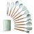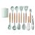Set 12 ustensile de bucatarie din silicon termorezistent si maner din lemn natural