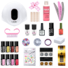 Kit unghii gel Essential, Piko, cu lampa UV LED 90 W, degresant, top, baza, pensule, decoratiuni