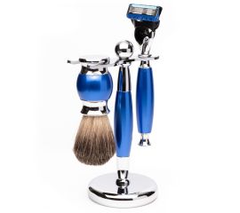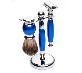 Set barber ” Royal Blue Modern ” de la Yoshimoto , calitate superioara. Este gandit pentru barbatul puternic, dar atent la infatisare, ce apreciaza stilul. Pamatuful de barbierit este fabricat din metal placat cu crom si par de bursuc 100%, ceea ce transforma barbieritul clasic intr-o...