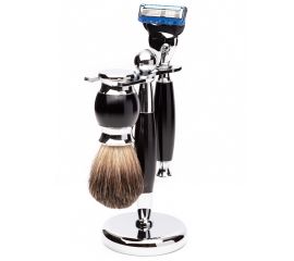 Set barber ” Royal Black Modern ” de la Yoshimoto, calitate superioara. Este gandit pentru barbatul puternic, dar atent la infatisare, ce apreciaza stilul. Pamatuful de barbierit este fabricat din metal placat cu crom si par de bursuc 100%, ceea ce transforma barbieritul clasic...