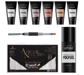 Kit Polygel Premium Complete, Lila Rossa pensula, tipsuri, lichid modelare, 6 x Fast Builder Polygel 60g  Descopera kit-ul complet de manichiura cu polygel!  Setul include toate produsele de care ai nevoie pentru realizarea unei manichiuri perfecte cu polygel. Este potrivit pentru...